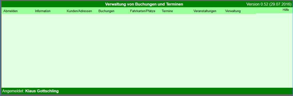Nach Aufruf einer Funktion enthält die Menüzeile nur die Punkte „Abmelden“, „zurück“ und „Hilfe“.