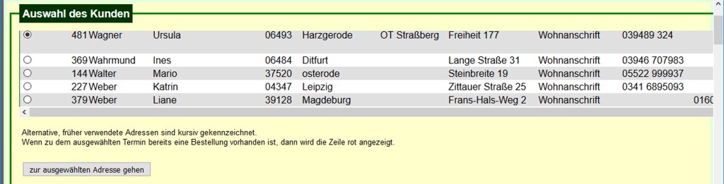 Bei einigen Auswahlfeldern (z. B. Auswahl der Termine bei Buchungen, s. Bild 2) mus nach Änderung der Auswahl der Inhalt des Arbeitsbereichs neu azfgebaut werden. In der Regel geschieht dies automatisch. Dann muss man nicht explizit den zugehörigen Schalter betätigen.