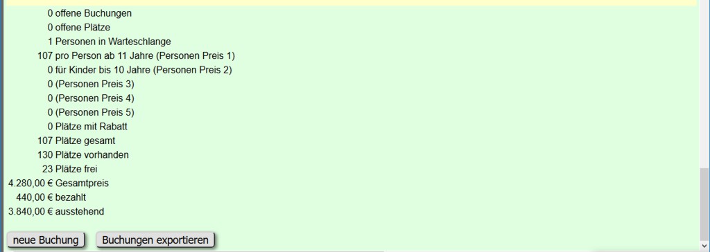 Wenn nicht es nicht explizit erwähnt ist, geht es um die Buchungsliste für Veranstaltungstermine.