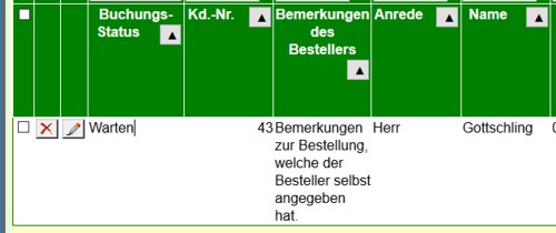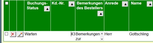 Die andere Liste zeigt die Buchungen eines Kunden.