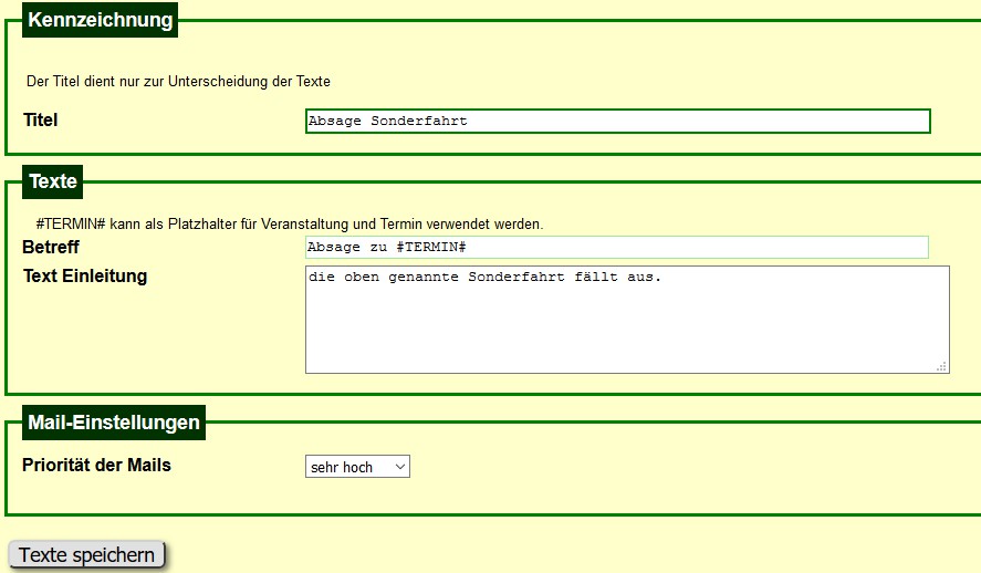 Das Formular zum Bearbeiten der Nachrichtentexte wird angezeigt, wenn man im Formular zum Auswählen/Bearbeiten der Nachrichteninhalte den Schalter oder betätigt.
