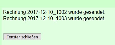 In dem neuen Fenster werden die Nummern der gesendeten Rechnungen angezeigt (s. Bild 3).