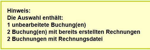 Hat man in der Buchungsliste Buchungen mit Rechnungen und Mail-Adressen ausgewählt und unter der Liste den Schalter betätigt, zeigt das Portal einige Informationen zur Auswahl an (s. Bild 1).